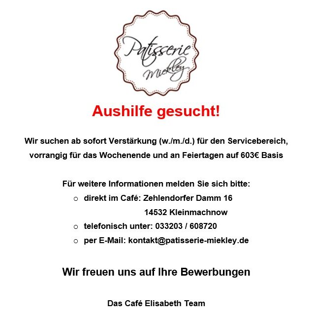 Aushilfe gesucht